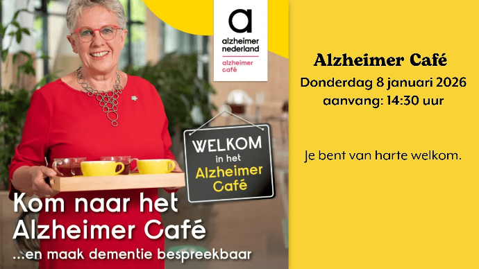 Kom naar het Alzheimer Café op donderdag 8 januari 2026, vanaf 14:30 uur.