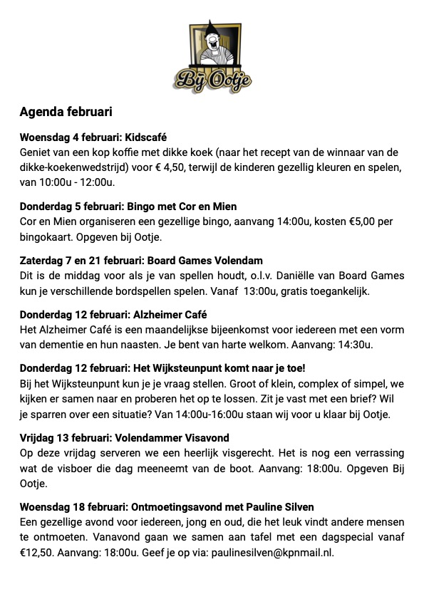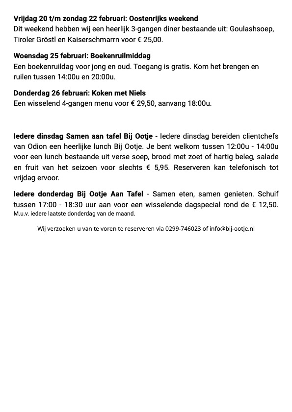 Iedere donderdag gaan we samen bij Ootje aan Tafel. Wij serveren een wisselende dagspecial vanaf 17:00 - 18:30 uur. Geef je op en schuif gezellig aan.